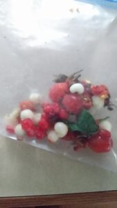 contents of one grouse’s crop (maybe not everyone’s cup of tea, but as a nature nut I find things like this fascinating, so perhaps some others out there will as well) as it had just eaten a hardy meal of snowberry, bunchberry, bearberry and rosehips among other things. I thank the bird for supplying me with seeds. Though these ones were fairly fresh, many times further processed ones can be direct sown without scarification, as the bird’s digestive tract helps remove protective coatings on the seeds. Birds are great helpers in spreading partially digested seeds to continue the germination process and biodiversity of many areas. If one is wanting to attract wildlife it is also helpful to know what plants or parts of plants they eat and at what times of the year.