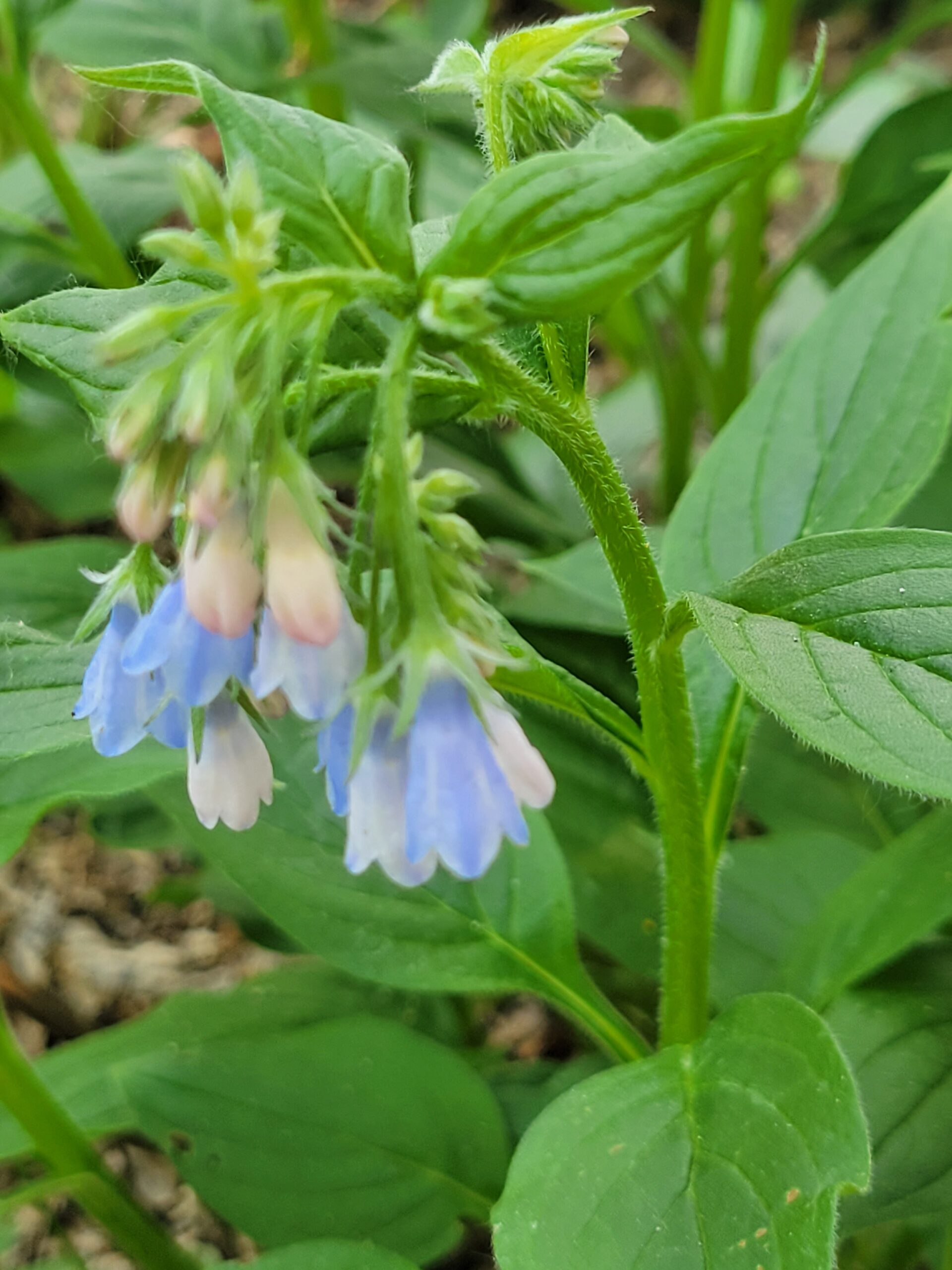 Pretty bluebell flowers adorn this larger broad leafed native. It is interesting to follow their colour change with emerging flowers starting out pinkish, then maturing to blue, before aging back to pink again. It grows to about 2 1/2′ and is a great filler for moist, shady areas.